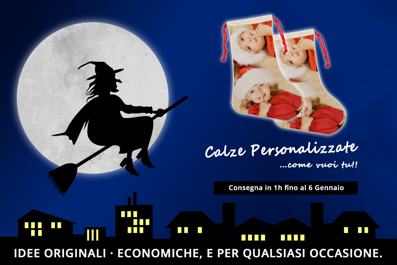 Fino al 6 Gennaio Speciale Idee Regalo per la Befana con consegna in un'ora. Calze Personalizzate di tutte le dimensioni. Numerose referenze, stampiamo anche su quelle che ci porterai tu.